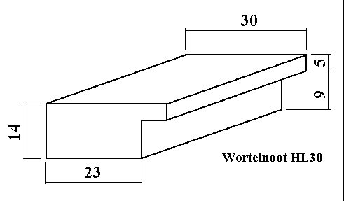 De "Wortelnoot" houten wissellijst is gemaakt van ramin en leverbaar in 20mm en 30mm breed. Deze lijsten zijn voorzien van 2mm geslepen floatglas welke optisch zeer zuiver en extra vlak is.
