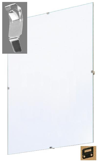 Vanaf de maat 10,5x15 t/m 24x30 kunnende randloze wissellijsten opgehangen worden aan een uitsparing in een van deze metalenclips. Vanaf de maat 28x35 voorzien van 2 extra ophanghaken.